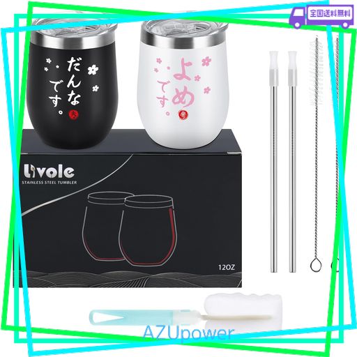 LIVOLE 結婚祝い プレゼント 結婚記念日 ペアタンブラー 真空断熱タンブラー 夫婦 カップル ペア 贈り物 ギフト ステンレス タンブラー 蓋付き 保温保冷 350ML 、だんな & よめ、黒+白