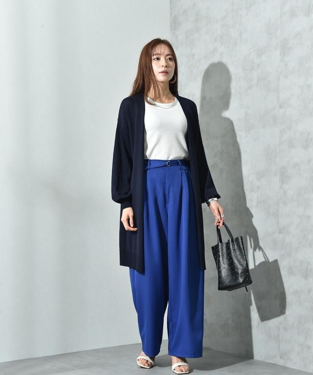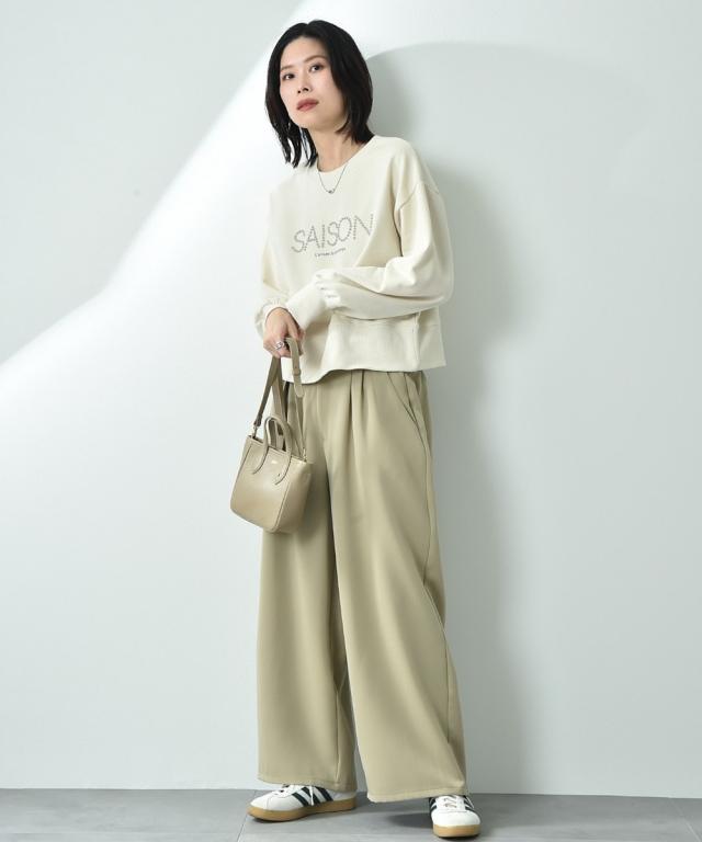 お仕事やお出かけにヒールやフラットシューズを合わせて女性らしく着こなすのがおススメです。もちろん、スニーカーを合わせた大人カジュアルスタイルにも◎