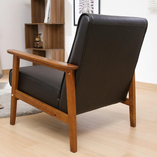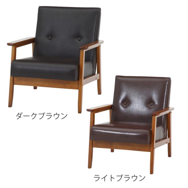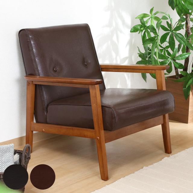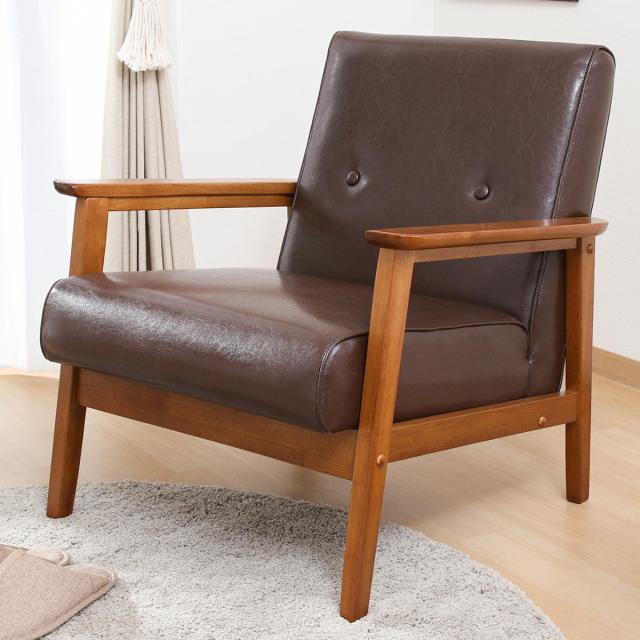 ソファ 1人掛け 座面高36cm レザー調 バイキャストPUソファ ミート ( 肘付き 天然木 木製 フレーム シンプル ビンテージ調 ブルックリン風 レトロ調 )