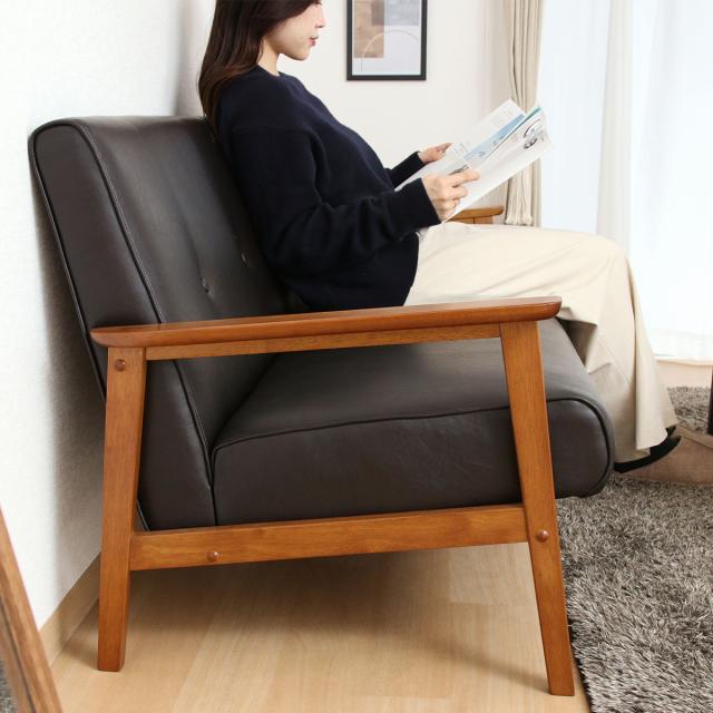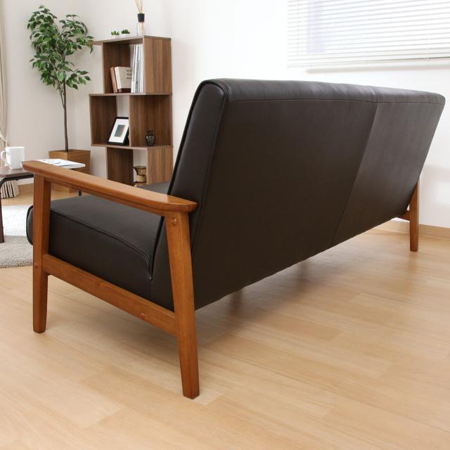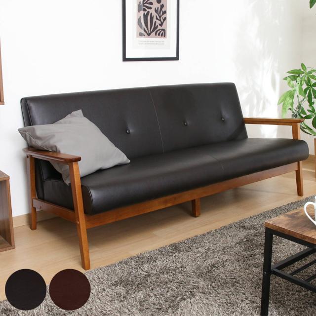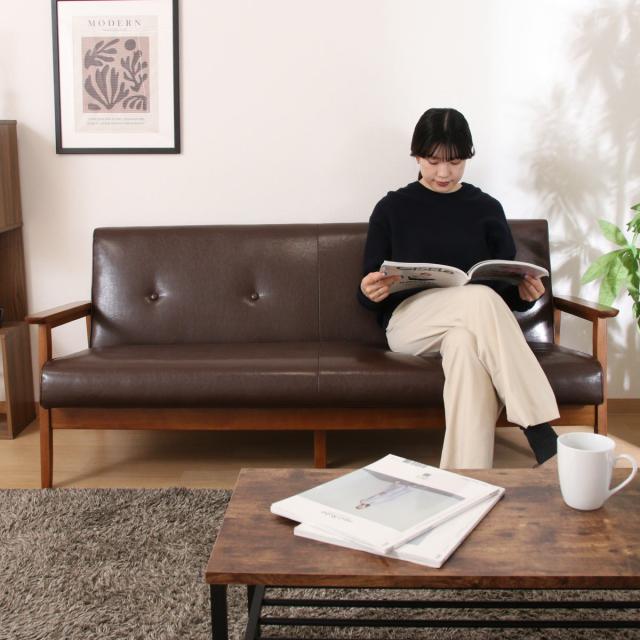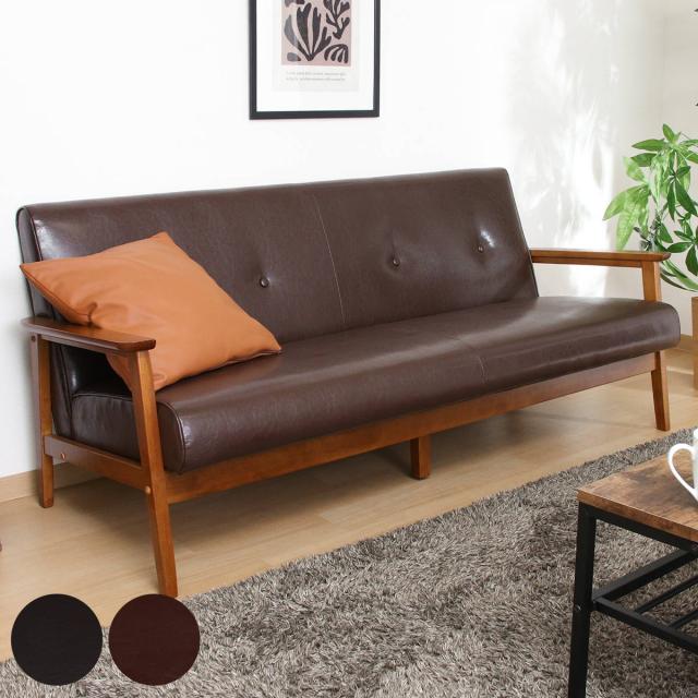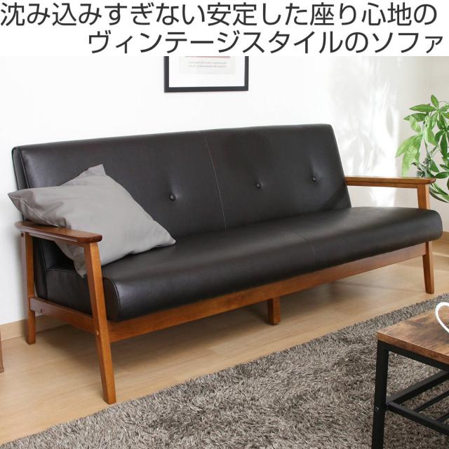 ソファ 3人掛け 座面高36cm レザー調 バイキャストPUソファ ミート ( 肘付き 天然木 木製 フレーム シンプル ビンテージ調 ブルックリン風 レトロ調 )