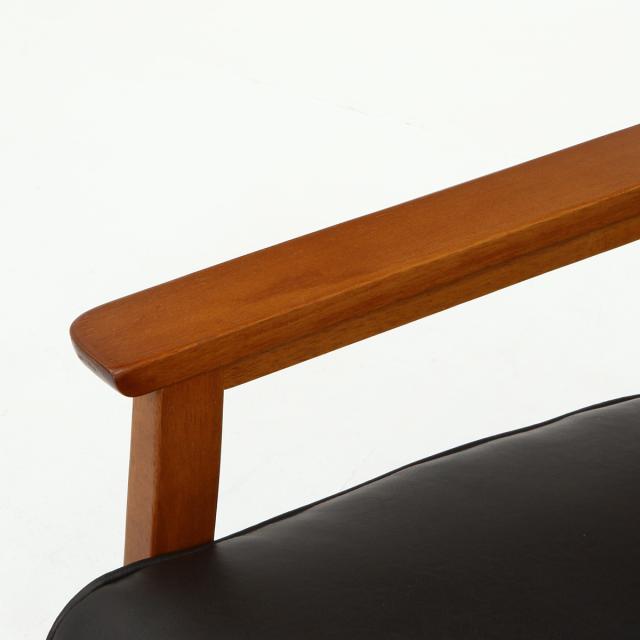 木目が美しいひじ掛けは、角が丸く加工されているので安心です。