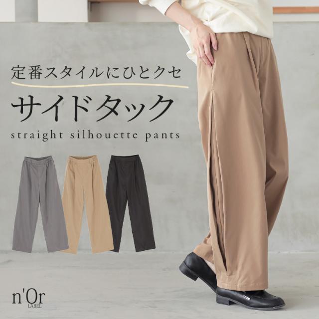 ストレートパンツ レディース ボトムス ワイドパンツ ロング丈 サイドタックパンツ ウエストゴム ポケット ツイル生地 春 【TP】 パンツ ロングパンツ n'OrLABEL ノア—ルレーベル 大人女子 大人可愛い お洒落可愛い 大人カジュアル ベーシック ニュアンス ラフ エフォートレス オフィスカジュアル 上品 きれいめ ナチュラル フルレングス 10分丈 サイドタック タック ベルトループ 無地 おうちで洗える 夏 秋 冬 オールシーズン カジュアル シンプル モード キレカジ フェミニン ゆったり ゆる Sサイズ Mサイズ Lサイズ LLサイズ 3Lサイズ XLサイズ ぽっちゃり 体型カバー 大きいサイズ プラスサイズ 10代 20代 30代 40代 50代 60代 女子会 オフィス 通勤 通学 お買い物 お出掛け 旅行 リゾート レジャー アウトドア キャンプ おしゃれ お洒落 トレンド 流行 osharewalker オシャレウォーカー おしゃれうぉーかー ベージュ グレー 灰色 ブラック 黒[ID]11bn05i