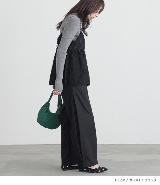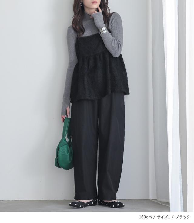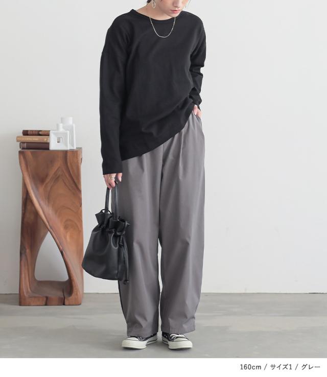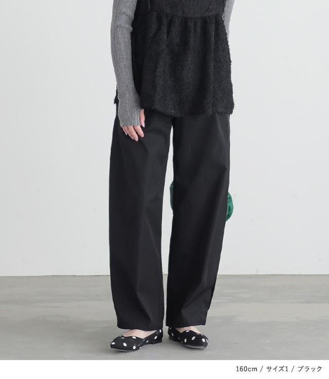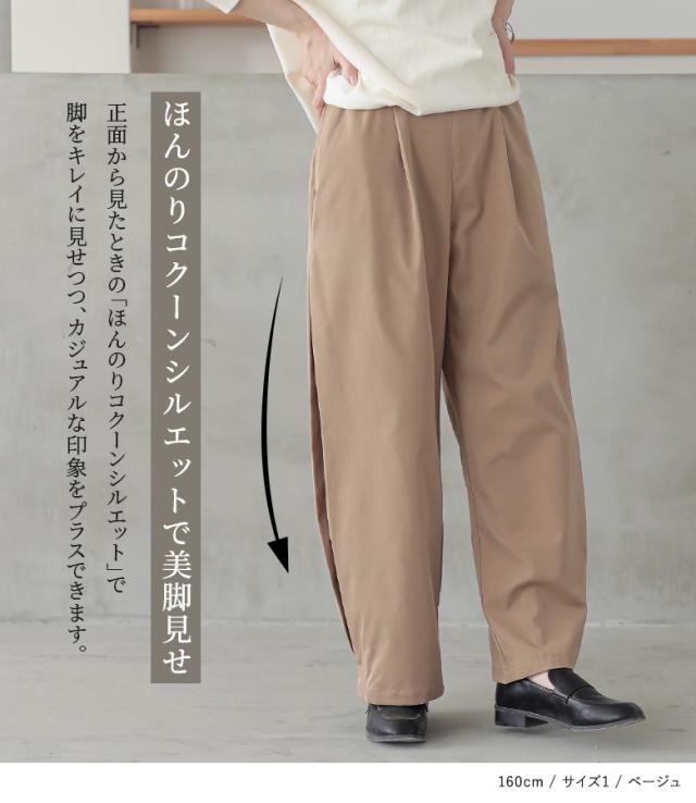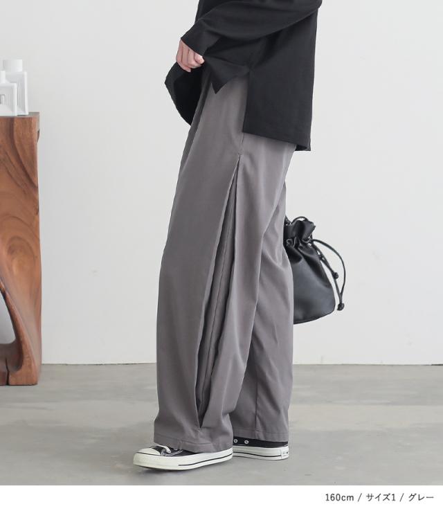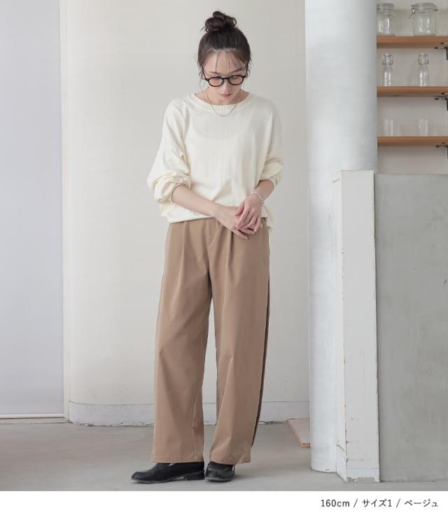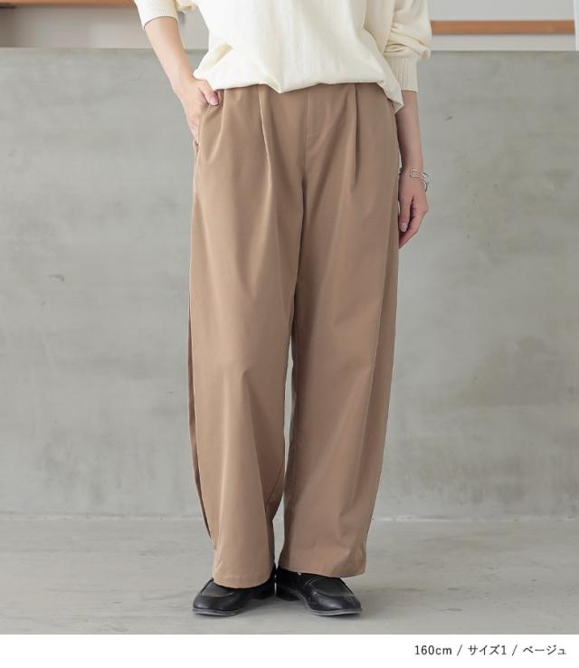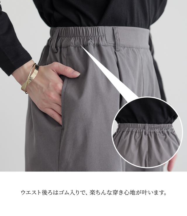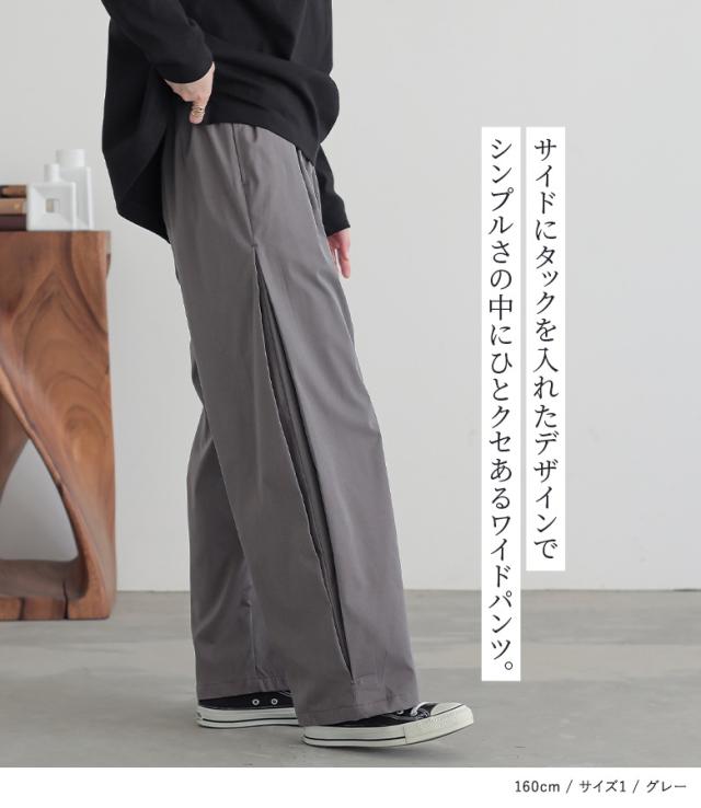 『サイドタックパンツ』【メール便不可】【30】[ストレートパンツ レディース ボトムス ワイドパンツ ロング丈 サイドタックパンツ ウエストゴム ポケット ツイル生地 春]