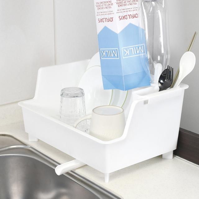 《 LH13323 プラスチック製 可動ノズル 排水 水切り籠 自然乾燥 シンク回り シンク周り カトラリーポケット 食器立て 水きり 水切り収納 キッチン収納 キッチン雑貨 キッチン用品 台所用品 キッチングッズ 水回り用品 便利 役立つ おしゃれ おすすめ オススメ ディッシュスタンド シンプル スタイリッシュ ホワイト 白 》