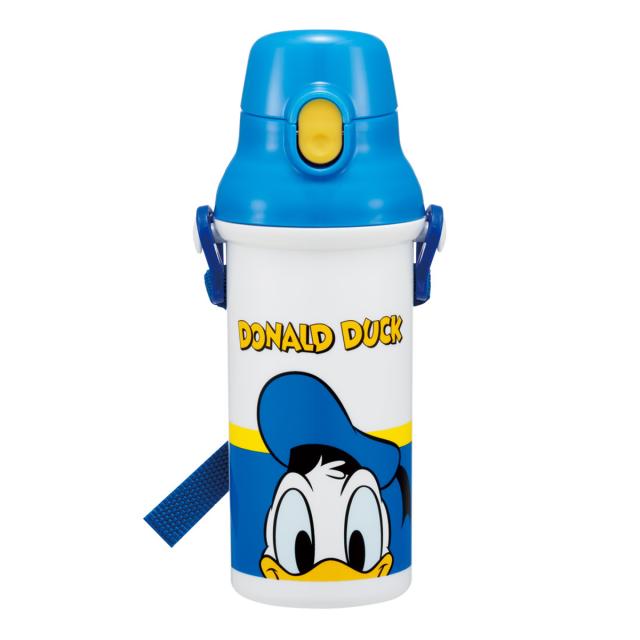 水筒 480ml 抗菌直飲プラボトル ドナルドダック ( ドナルド 子供用 抗菌 プラスチック製 ダイレクトボトル 直飲み ワンタッチ 日本製 抗菌加工 AG 銀 ショルダーベルト付き 広口 軽量 ボトル ワンプッシュ )