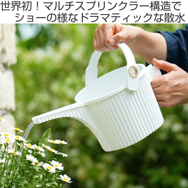 毎日の植物のお世話に新たな機能と楽しさをプラスした新感覚のジョウロです。吊り下げても、無造作に置いてもスタイリッシュでオブジェのようなガーデンコーナーを演出できます。独自の注ぎ口、マルチスプリンクラー構造により、まるで噴水ショーの様なドラマティックでやさしい散水、素早い散水の2WAY(特許・意匠出願済)を叶えてくれます。