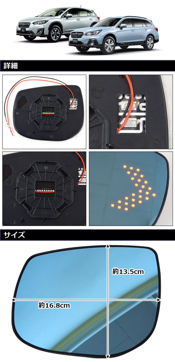 LEDウィンカー付ブルーミラーレンズ スバル インプレッサスポーツ GT系 2016年10月〜2023年04月 流れるウィンカー ミラーヒーター付き車用 入数:1セット(左右) AP-DM413