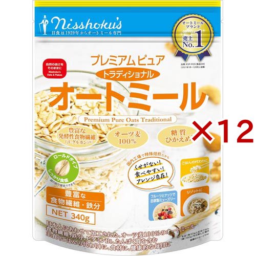 日食 プレミアムピュア トラディショナルオートミール(340g×12セット)[シリアル]
