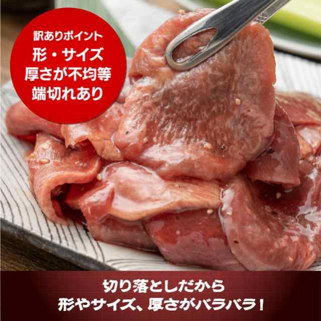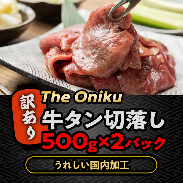 訳あり The Oniku 牛タン 切落し 500g×2パック 形不揃い 大容量 焼肉 BBQ 肉 牛肉 タン 冷凍 味付き 塩ダレ