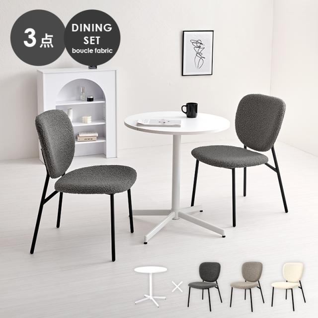 可愛く纏まる 丸型 カフェテーブルセット 3点 【送料無料】 丸テーブル ミニ ダイニングテーブルセット おしゃれ コンパクト 2人 小さい クッション ファブリック 椅子付き インテリア 円形