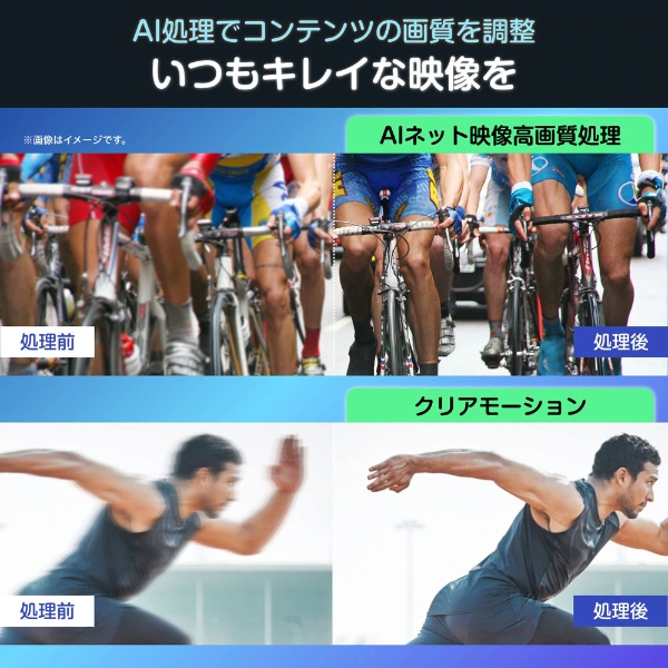 ●Apple AirPlay2、Anyview Castに対応し、スマートフォンの画面をテレビに映し出せる。「AIネット映像高画質処理」で高いコントラストと自然な色彩で再現。