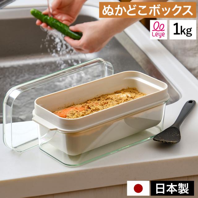 [ Leye ぬかどこボックス ]ぬか漬け容器 ぬか床ボックス 1Kg 水抜き 簡単 日本製 レイエ ぬか床 ぬか漬け 容器 水取り器 冷蔵庫 保存容器 燕三条 糠漬け容器 漬物容器 ヘラ付き 手作り レシピ コンパクト AUX オークス LES3201