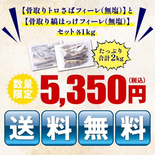リピーター続出の大人気商品「骨取りトロさばフィーレ」と「骨取り縞ほっけフィーレ」が1kgずつのセットで登場!