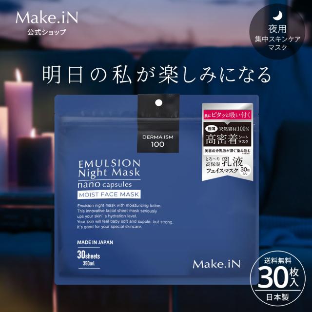 [公式] エマルジョンナイトマスク 30枚入り パック フェイスマスク 日本製 美容成分 保湿 自宅エステ 潤いスキンケア 乳液マスク 乳液 美容液 Make.iN