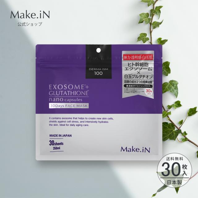 [公式] エクソソーム & 白玉グルタチオン フェイス マスク 30枚入 パック 日本製 シートマスク Make.iN