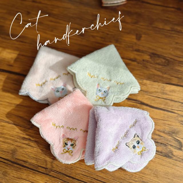 かわいい猫ちゃんのタオルハンカチのご紹介です。