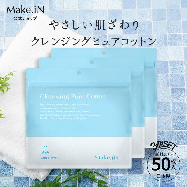 [公式] 3個セット クレンジングシート 50枚 メイクイン ふきとりシート ピュアコットン うるおい メイク落とし クレンジング 洗顔 毛穴 角質 保湿 美容 スキンケア Make.iN