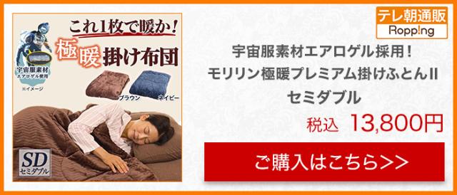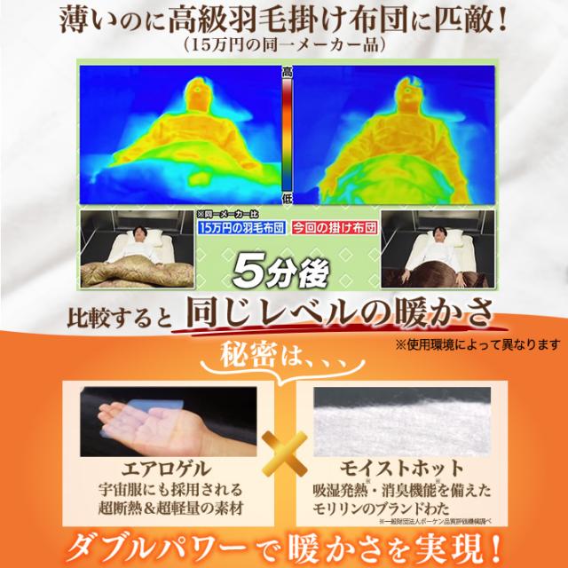 宇宙服素材エアロゲル採用!モリリン極暖プレミアム掛けふとんIIシングル ニッポンめしあがれ テレビ朝日 テレ朝通販 ロッピング 1枚で 軽い 薄い 暖かい