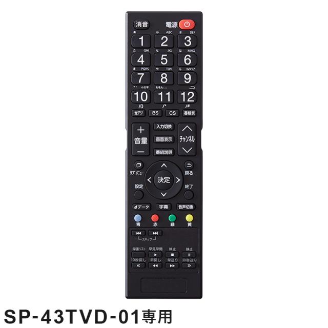 【リモコン単品】【SP-43TVD-01専用】43V型 液晶テレビ リモコン 3波 ダブルチューナー SP-43TVDR-01 43V 43インチ 43型 テレビ TV【送料無料】