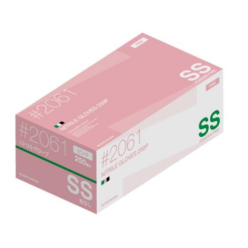 [川西工業]2061 ニトリル使いきり手袋 粉無 ピンク SSサイズ 250枚入