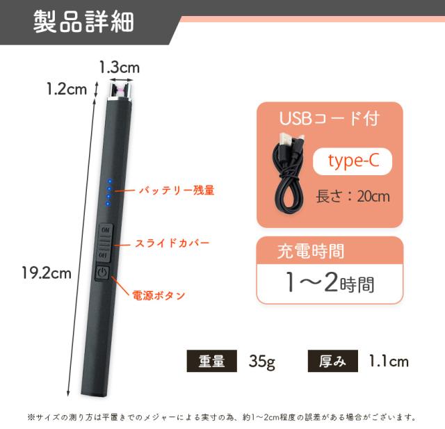 【サイズ】本体:縦19.2cm(着火部分を閉じた状態)×横1.3cm×厚み1.1cm