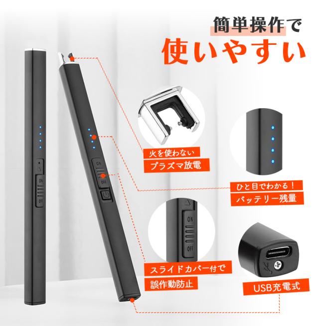 電子ライター プラズマライター 強風で消えない ライター ブラック シルバー ゴールド グレー USB充電式 ガス オイル 不要 点火用ライター キャンドル 花火 ろうそく アウトドア お香 花火 キャンプ 蚊取り線香 防風 USB 充電式 アークライター エコ シンプル