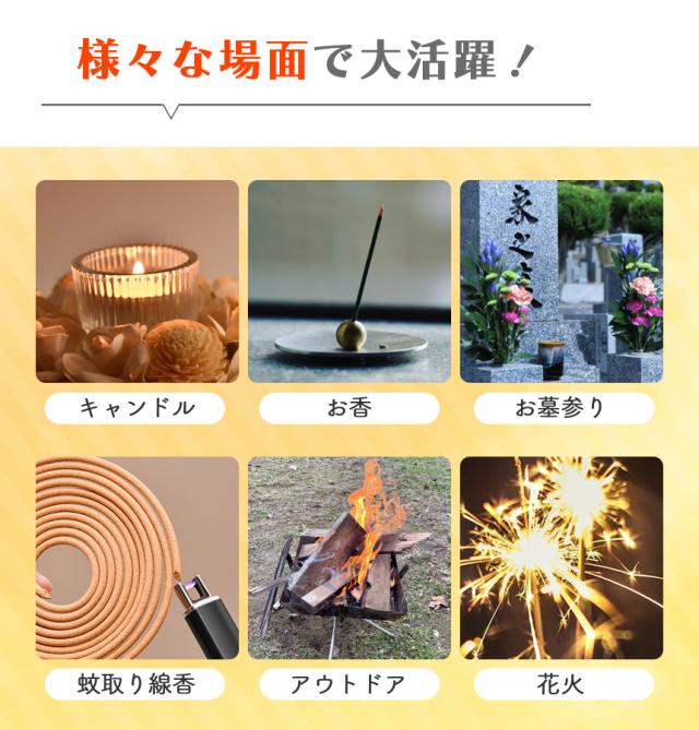 キャンドル、お香、お墓参り、蚊取り線香、アウトドア、花火など