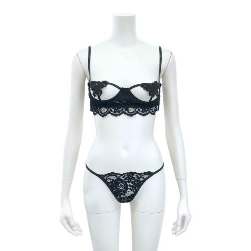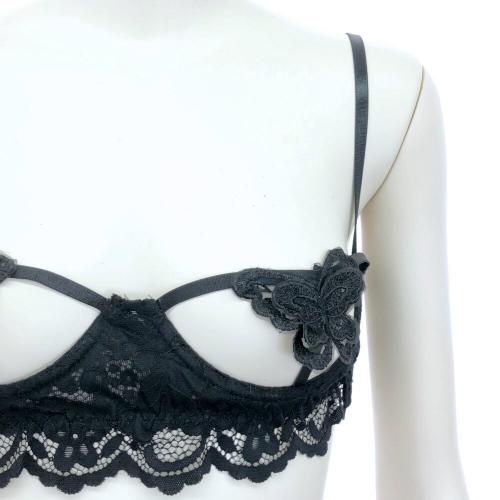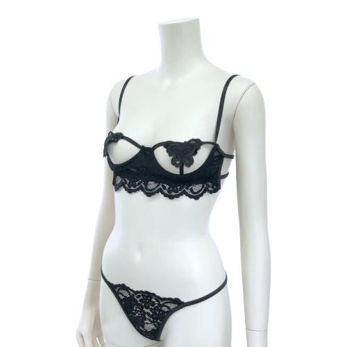 ブラジャー ショーツ セット ブラセット ランジェリー 下着 バタフライ バタフライ しっかり 蝶 透け感 レース ブラック フリーサイズ