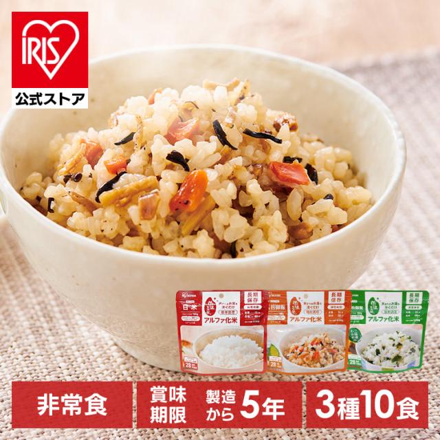 非常食セット 防災食 アルファ米 保存食 白米 わかめご飯 五目ご飯 防災食品 長期保存食 5年保存 備蓄 アイリスフーズ アイリスオーヤマ α化米3種10食セット *