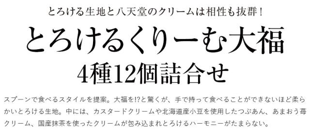 八天堂 とろけるくりーむ大福12個セット 詰め合わせ スイーツ お菓子 カスタード 苺 抹茶 冷凍 贈り物 プレゼント