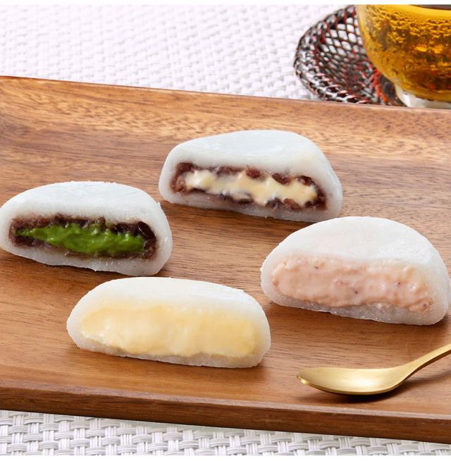 ○内容量:とろけるくりーむ大福(カスタード、つぶあんカスタード、あまおう苺、つぶあん抹茶)×各3
