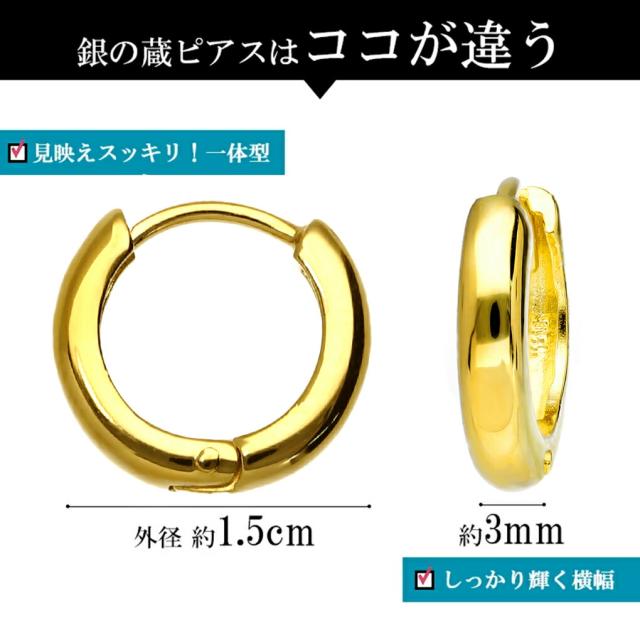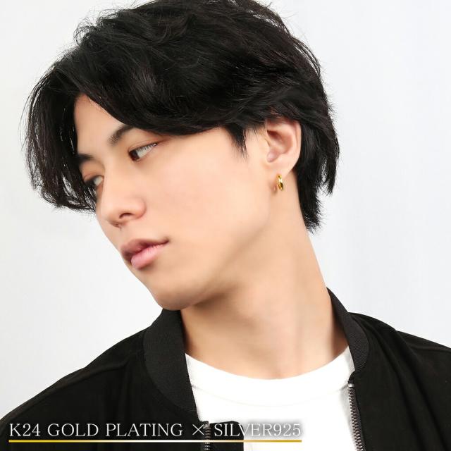 ゴールド ピアス シンプル フープピアス 1P 片耳 ピアス メンズ K 24 24金 純金 k24 K24 金 コーティング シルバー925 シルバーピアス リングピアス