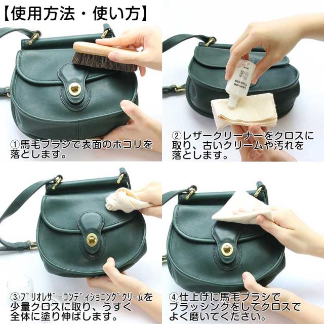 スムース革製品のお手入れに必要なクリーム、クリーナー、ブラシやクロスをセットしました。