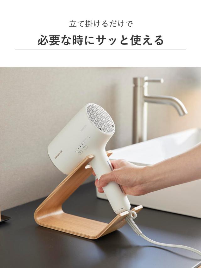 使用頻度の高いドライヤーをサッと使えて簡単に収納できるシンプルで木目の美しいスタンドです。立て掛けるだけで収納できるから置き場所に困らず使いたい時にサッと手に取れます。
