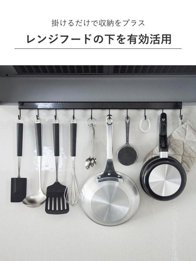 レンジフードにひっかけるだけ、キッチンツールの収納スペースに