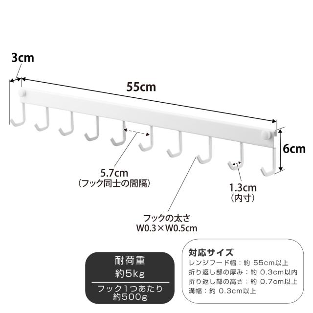 | サイズ | 約 幅55×奥行3×高さ6(cm) フック同士の間隔:約 幅5.7(cm) |