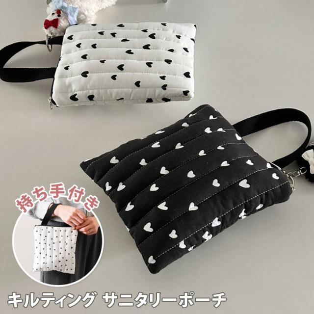 新作 持ち手付き キルティング ハート 総柄 サニタリーポーチ レディース エチケットポーチ 生理用品 ナプキン タンポン ポーチ 収納 小物入れ 大きめ 大容量 携帯 小学生 中学生 おしゃれ 可愛い 持ち運び