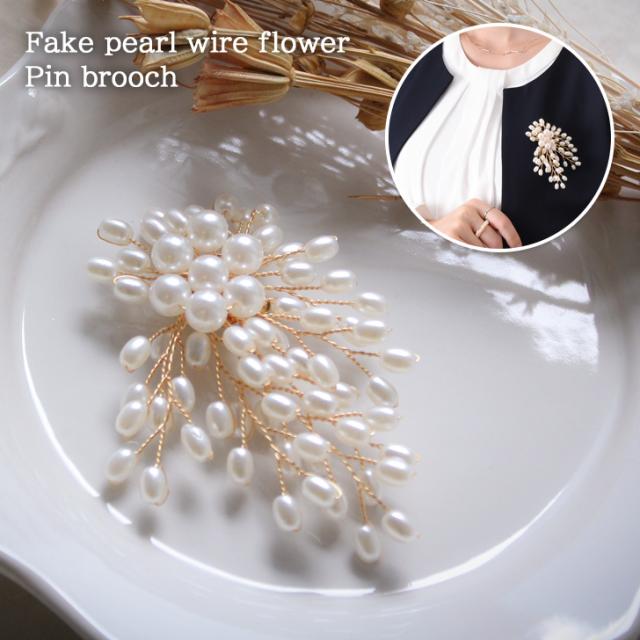 新作 フェイクパール ワイヤー フラワー ピン ブローチ レディース アクセサリー ジュエリー ピンブローチ ラペルピン コサージュ パール 結婚式 入学式 卒業式 入園式 卒園式 セレモニー 花 フォーマル 上品