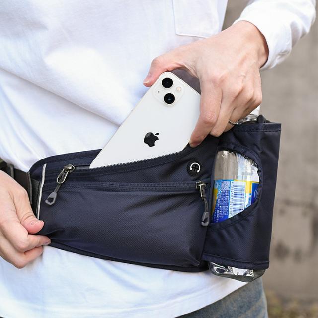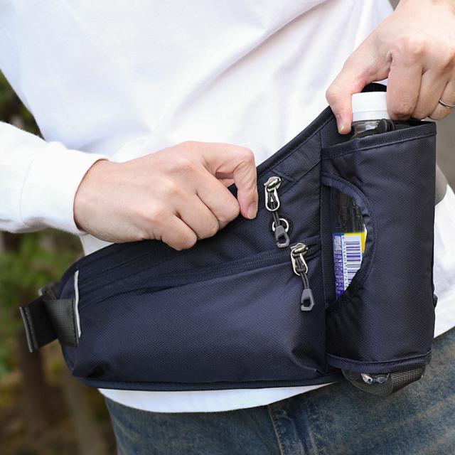 新作 ボトルホルダー付き 撥水 薄型 2way ランニングポーチ メンズ レディース ウエストポーチ ウエストバッグ ボディバッグ ショルダーバッグ 肩掛け 斜めがけ 軽量 大容量 ペットボトル 収納 散歩 おしゃれ