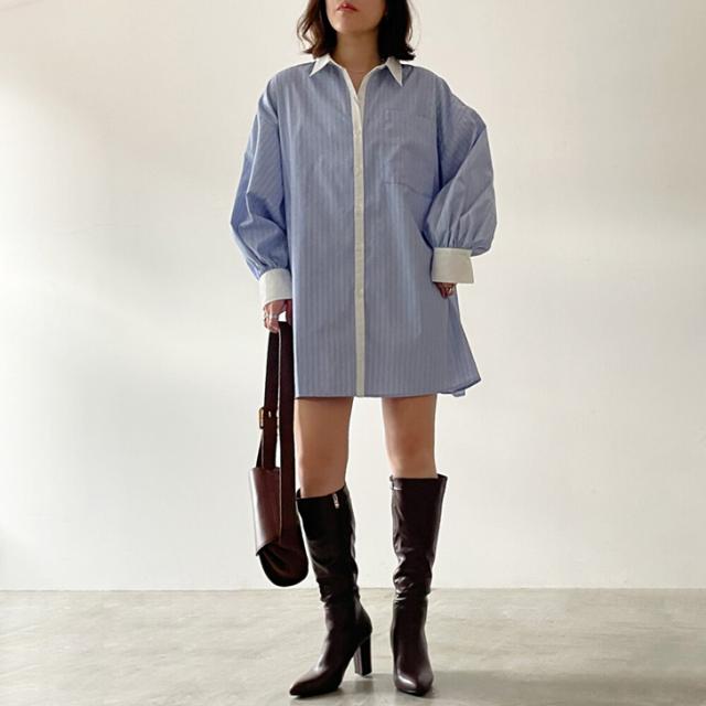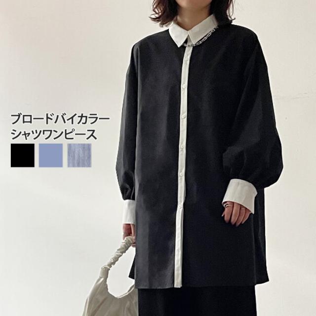 新作 バイカラーブロードシャツワンピース レディース ロングシャツ 長袖 春 夏 秋 冬 ストライプ 無地 薄手 きれいめ カジュアル ミニ丈 おしゃれ 可愛い 普段使い 重ね着 レイヤード 通勤 通学 体型カバー