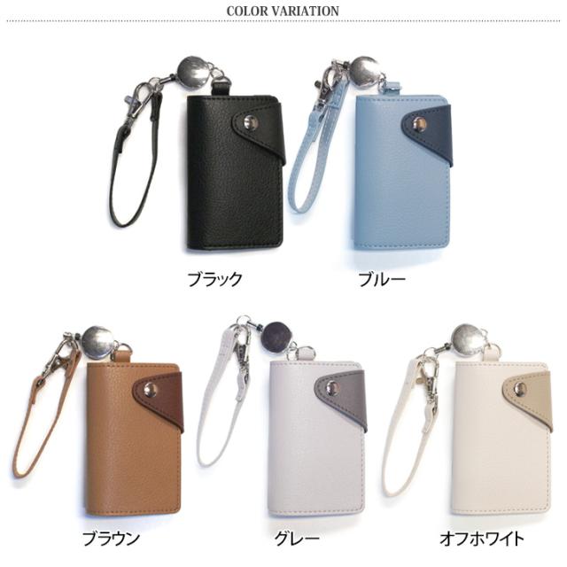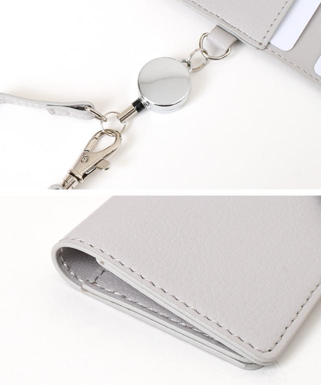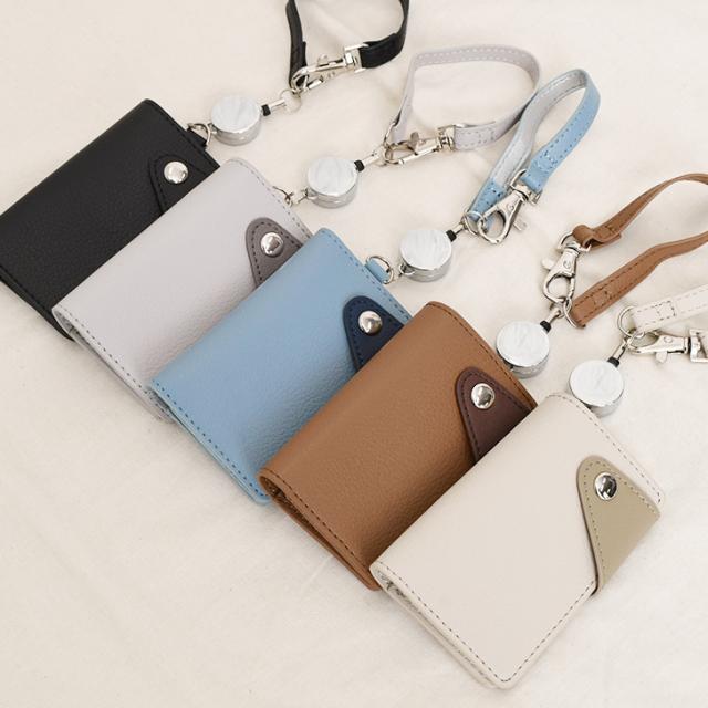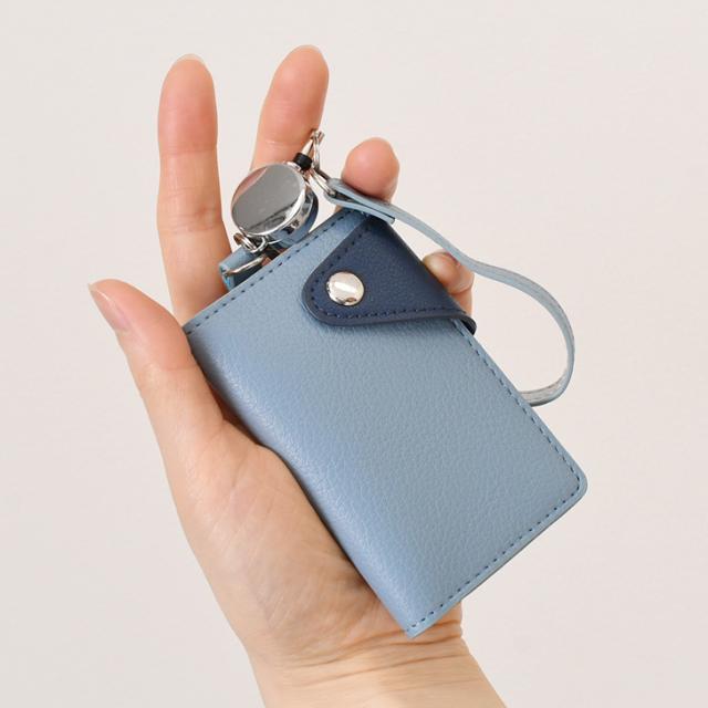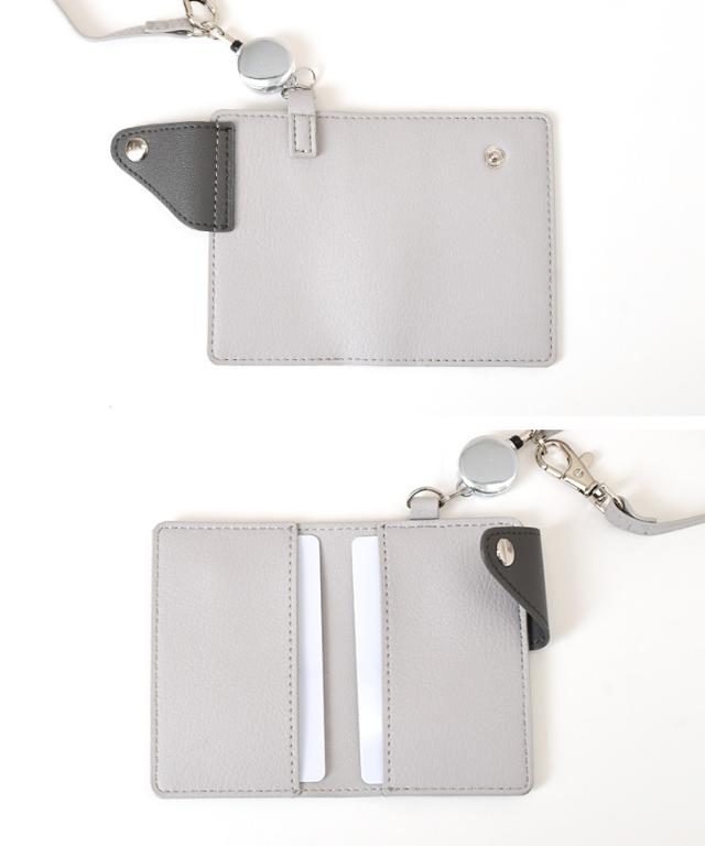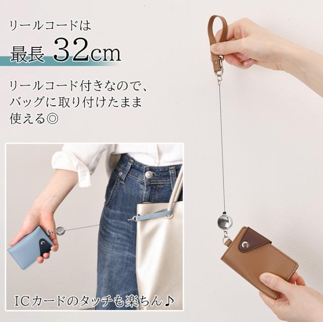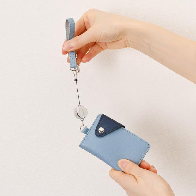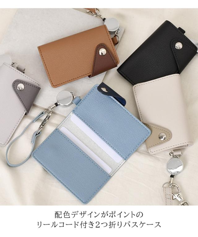●配色デザインがポイントのリールコード付き2つ折りパスケース