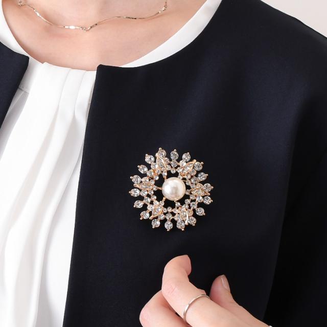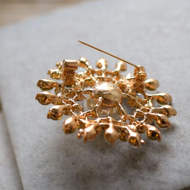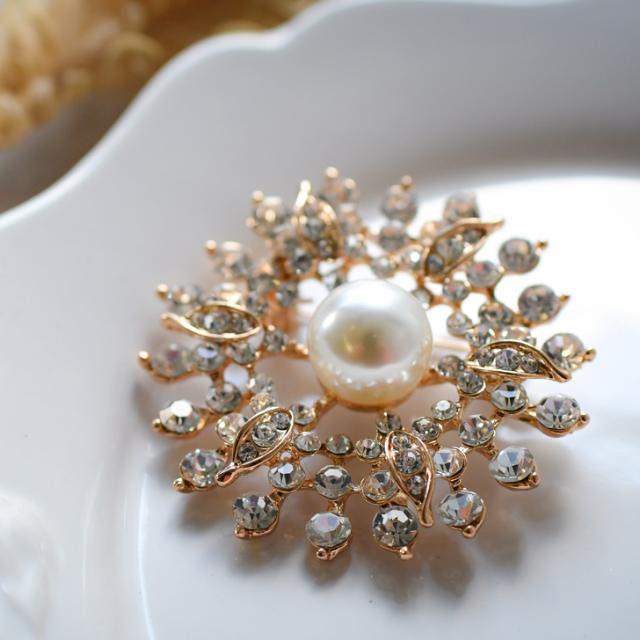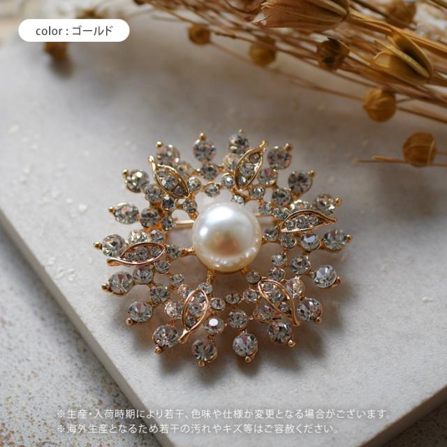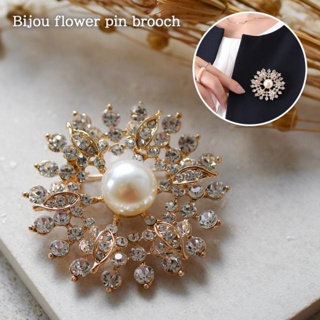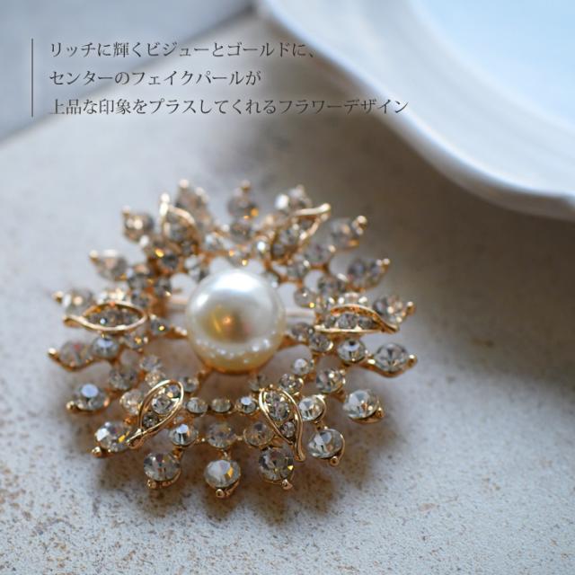 新作 ビジュー フラワー センター フェイクパール ピン ブローチ レディース アクセサリー ジュエリー ピンブローチ ラペルピン コサージュ パール ゴールド 花 結婚式 入学式 卒業式 入園式 卒園式 北欧