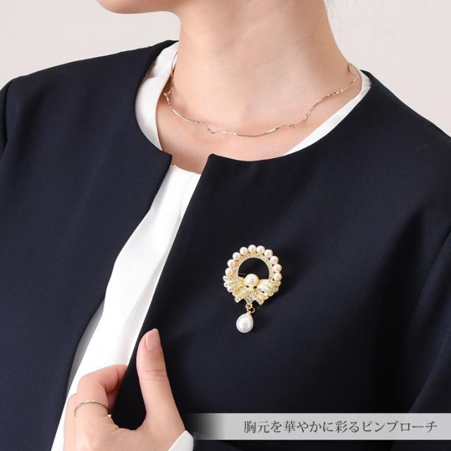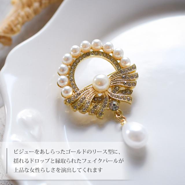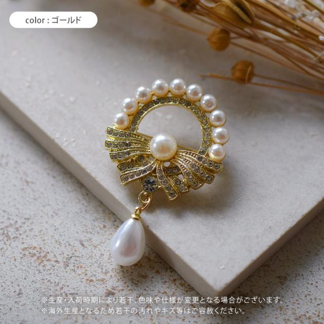 新作 ドロップ フェイクパール ラインストーン サークル ピン ブローチ レディース アクセサリー ジュエリー ピンブローチ ラペルピン コサージュ パール リース 結婚式 入学式 卒業式 入園式 卒園式 ゴールド