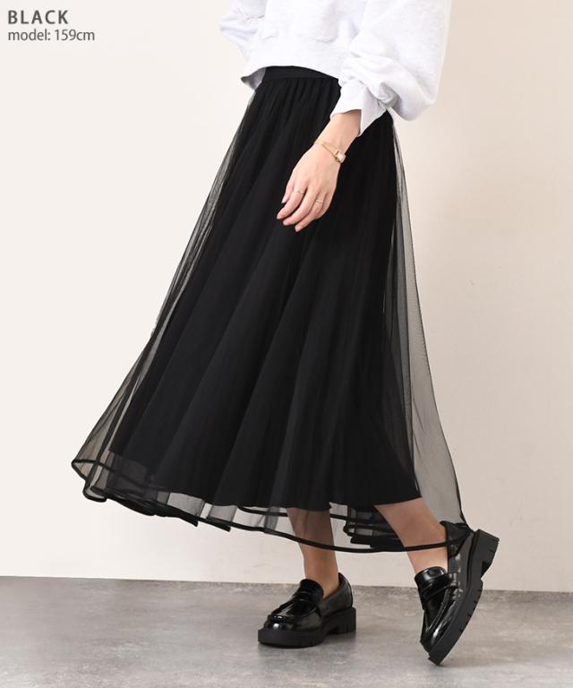 新作 チュールドッキングロングプリーツスカート レディース ボトムス ロング丈 きれいめ 無地 春 夏 秋 冬 フレア Aライン シンプル 上品 シアー 透け感 カジュアル オフィス OL 可愛い フォーマル デート