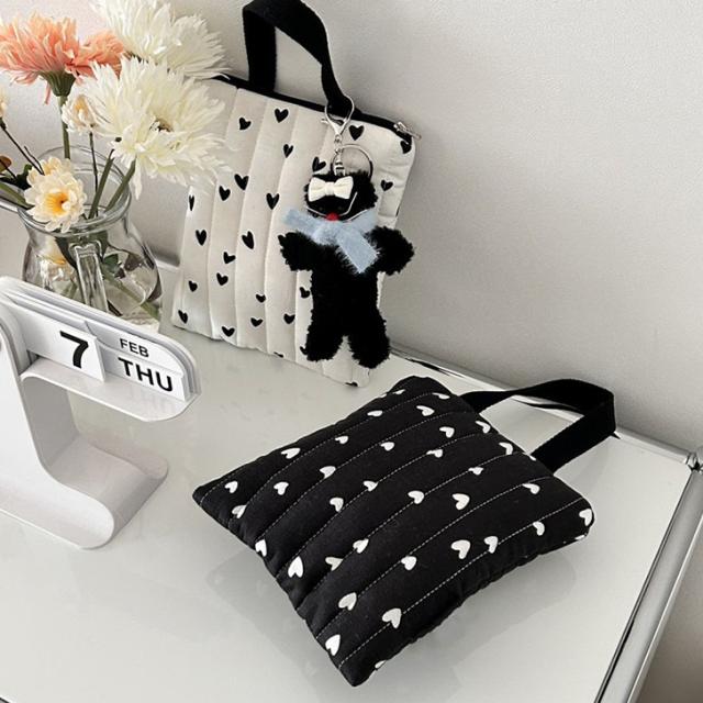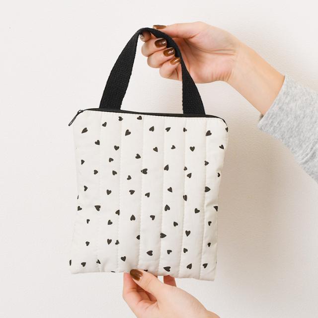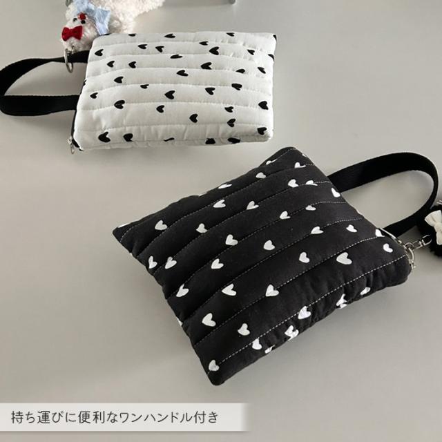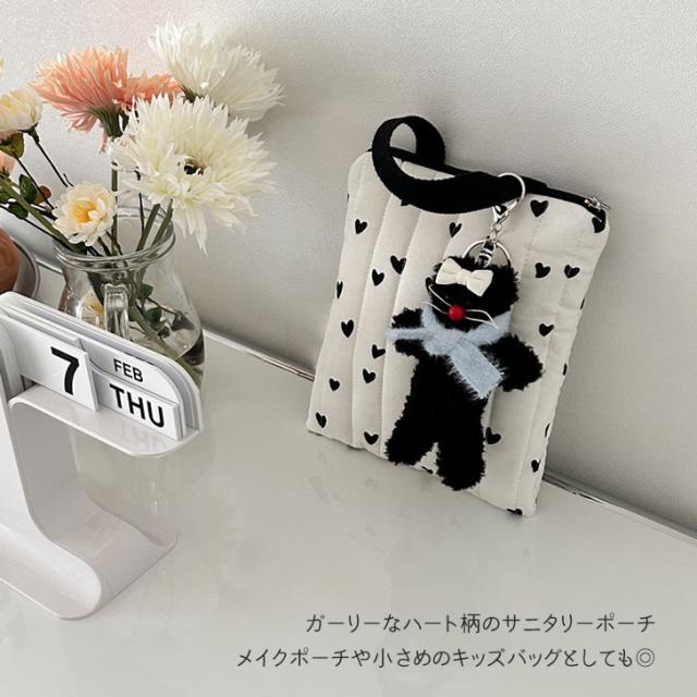 新作 持ち手付き キルティング ハート 総柄 サニタリーポーチ レディース エチケットポーチ 生理用品 ナプキン タンポン ポーチ 収納 小物入れ 大きめ 大容量 携帯 小学生 中学生 おしゃれ 可愛い 持ち運び