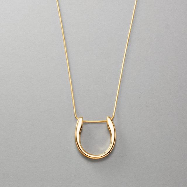 ビッグホースシューのロングネックレス。細く控えめにぷっくりとしたフォルムのホースシューとしなやかなベネチアンチェーンが相性抜群で大人コーデを洗練された印象に。この時期のシンプルスタイルにひとつプラスしてみて◎