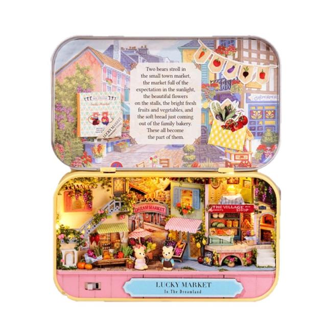 ドールハウス キット ラッキーマーケット 市場 手作り ミニチュア ドールハウスキット 手作り 木製 ジオラマ DIY DIYキット 950101