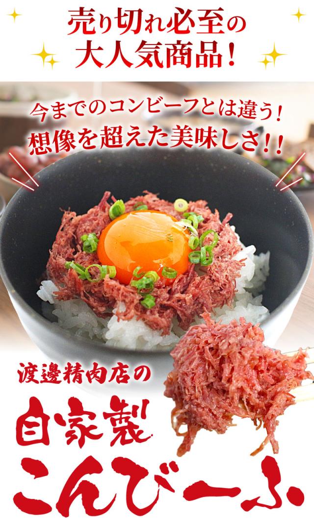 一般的なコンビーフは馬肉や馬の脂を混ぜたりしていますが、「自家製こんびーふ」は牛肉以外を使用していません。
