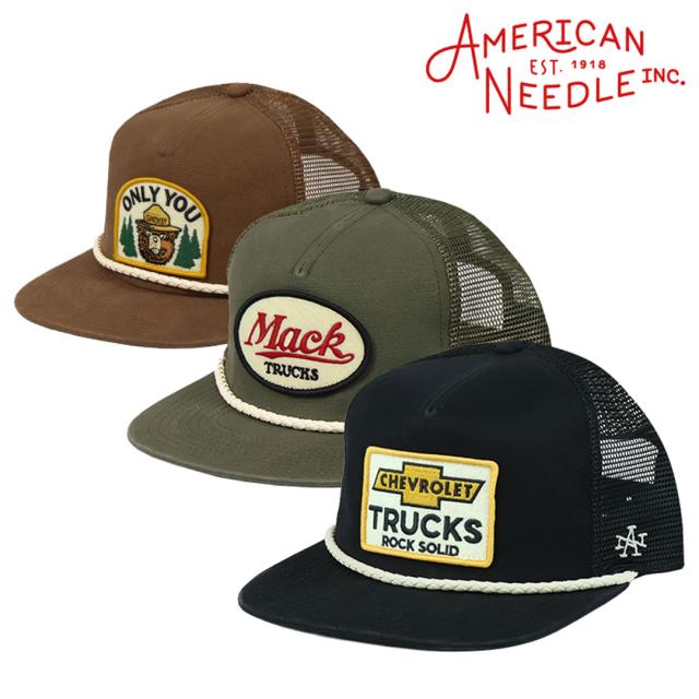 AmericanNeedleから、人気モデル"Wyatt"の5パネルメッシュキャップが入荷。フロント部分に企業ロゴのフェルトワッペンと編み込みのレザーロープがあしらわれた特徴的なデザインです。自動車メーカー「General Motors/Chevrolet(ジェネラルモーターズ/シボレー)」、貨物トラックメーカー「Mack Trucks(マック・トラックス)」、森林火災防止キャンペーンマスコットキャラクター「Smokey Bear(スモーキー・ベア)」の3種類をご用意。