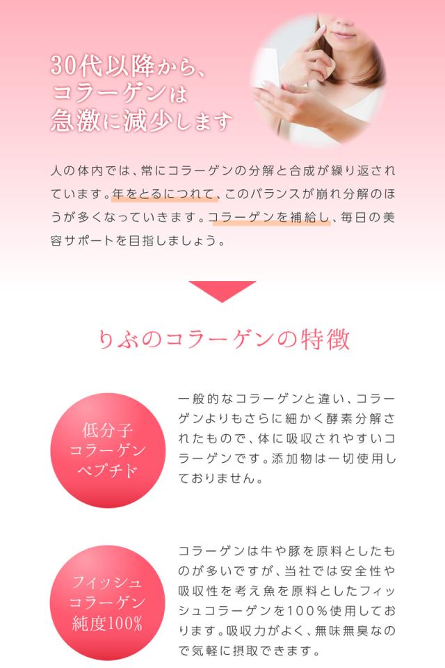 りぶメールのコラーゲンは吸収力の優れたコラーゲンペプチド100%。